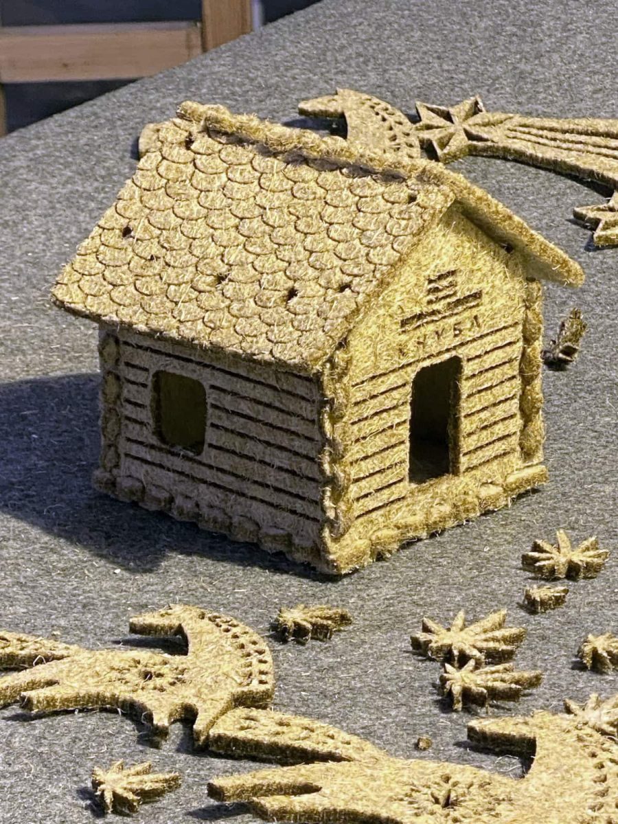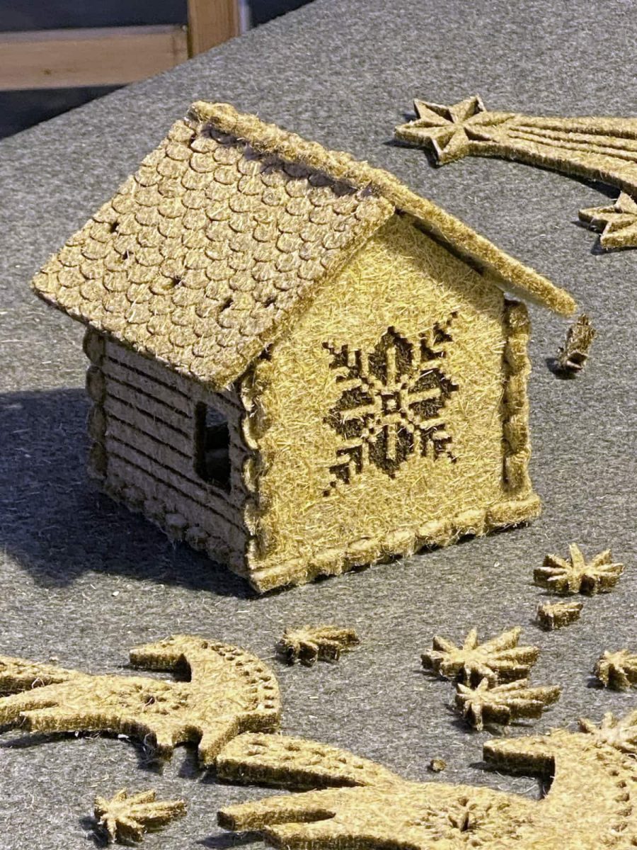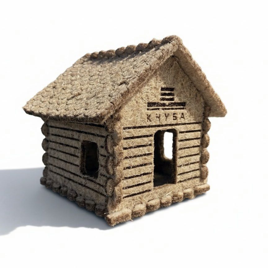 Еко-декор з конопляного волокна у формі будиночка КНУБА створює відчуття затишку та тепла ручної роботи. Натуральна фактура, прості форми й легкість матеріалу роблять його ідеальним акцентом для святкового інтер’єру або сезонної композиції. Підійде як самостійний декор чи елемент зимової сцени.