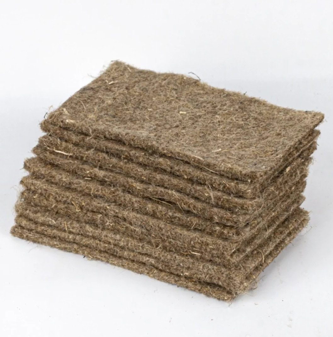 - Висока гігроскопічність: Конопляне волокно здатне вбирати велику кількість води. Волога залишається у килимках, що забезпечує необхідне зволоження.
