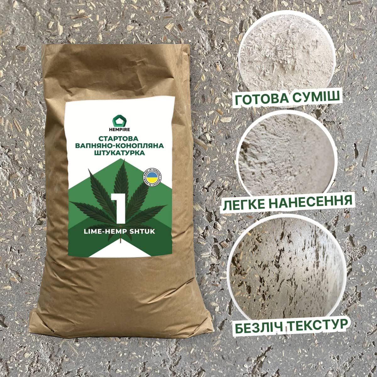 Шукаєте екологічно чисту, здорову та стильну штукатурку для стін? Вапняно конопляна штукатурка Стартова від Hempire UA – це ідеальне рішення для тих, хто цінує природні матеріали та комфорт. Природна сила та комфорт у вашому домі.